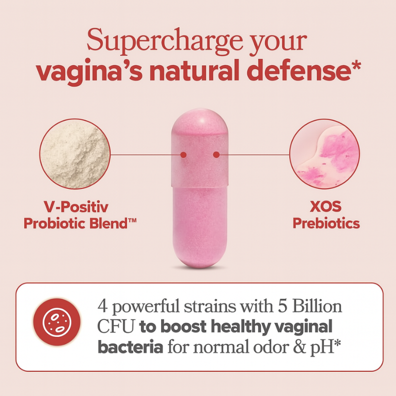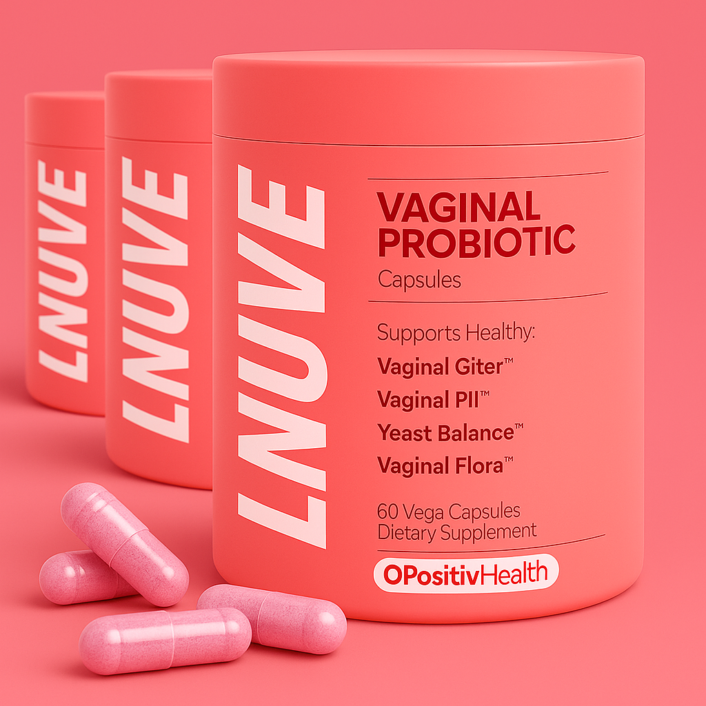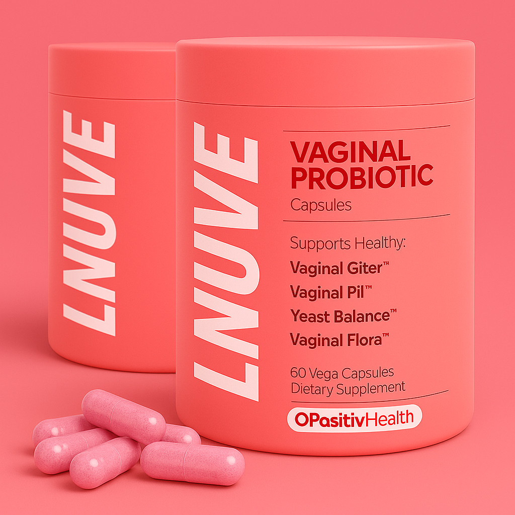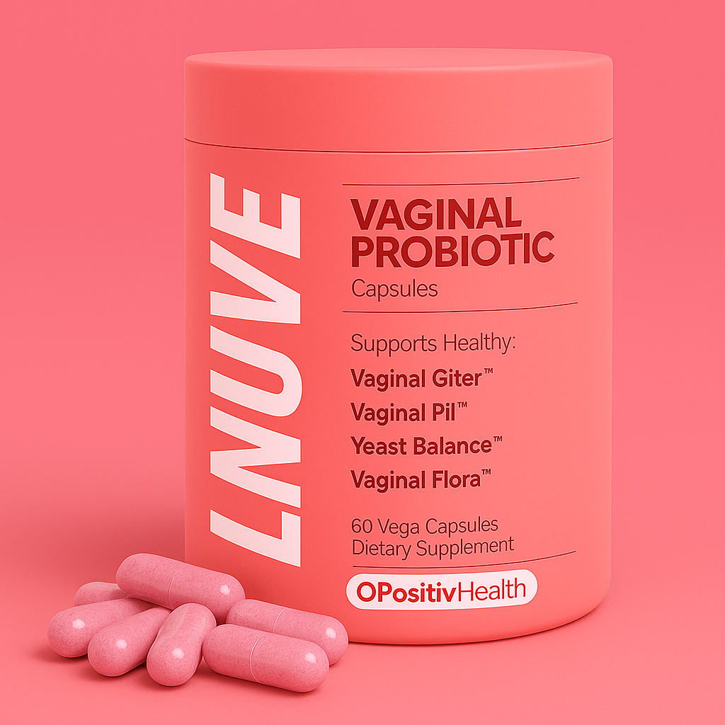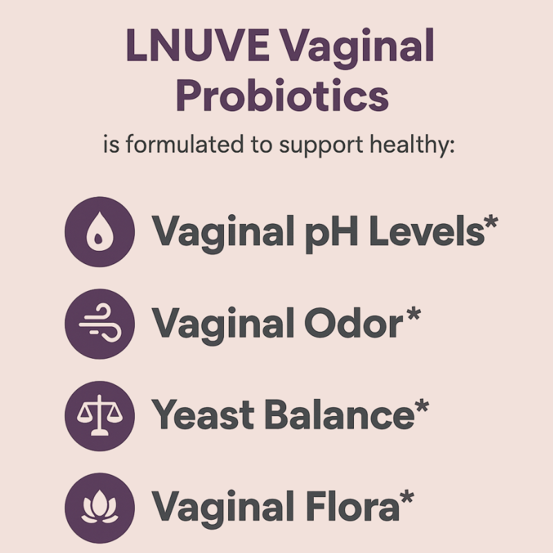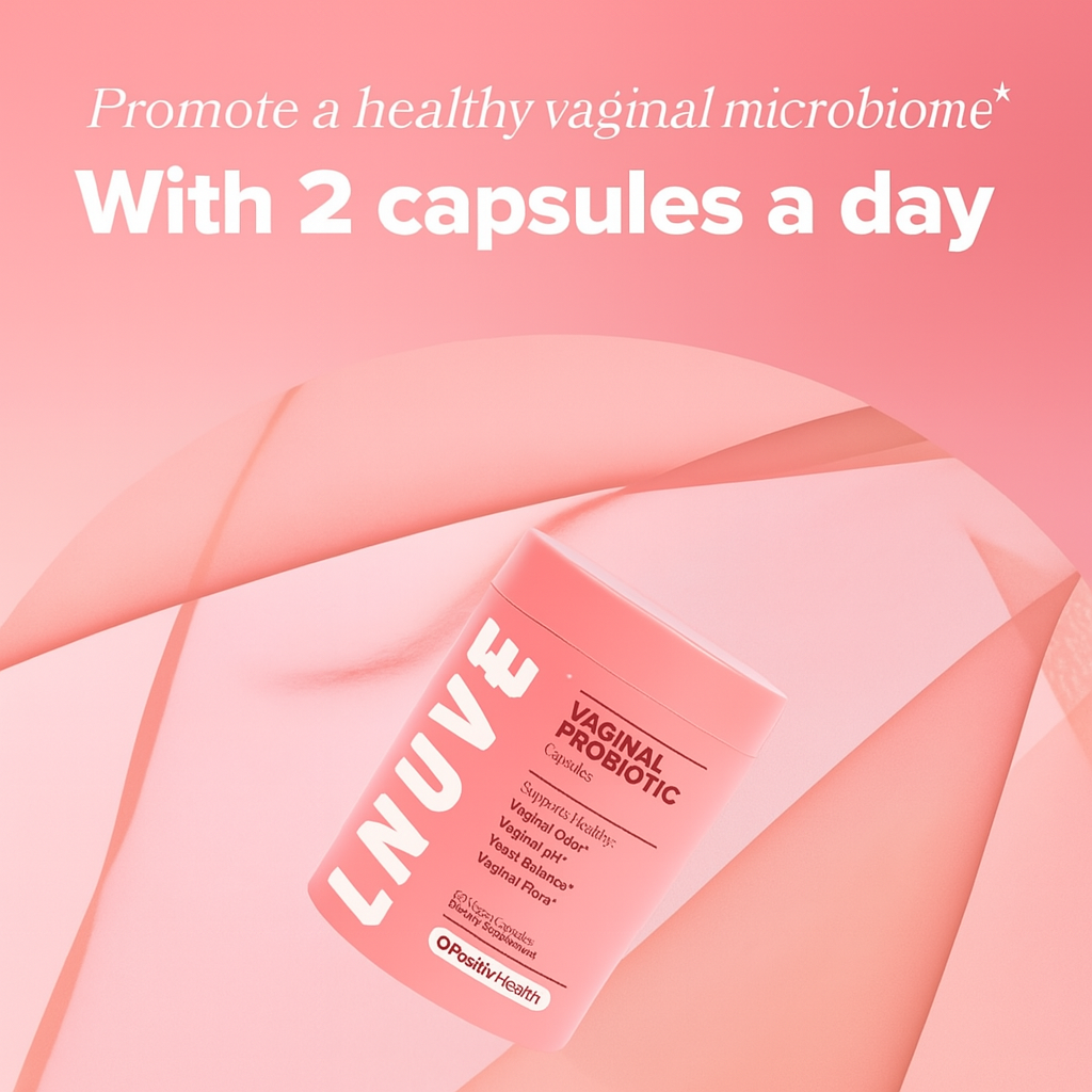 LNUVE Vaginal Probiotic Capsules are formulated with V-Positiv Probiotic Blend™ — delivering 5 billion CFUs to promote a healthy vaginal microbiome, pH balance, and odor control.*